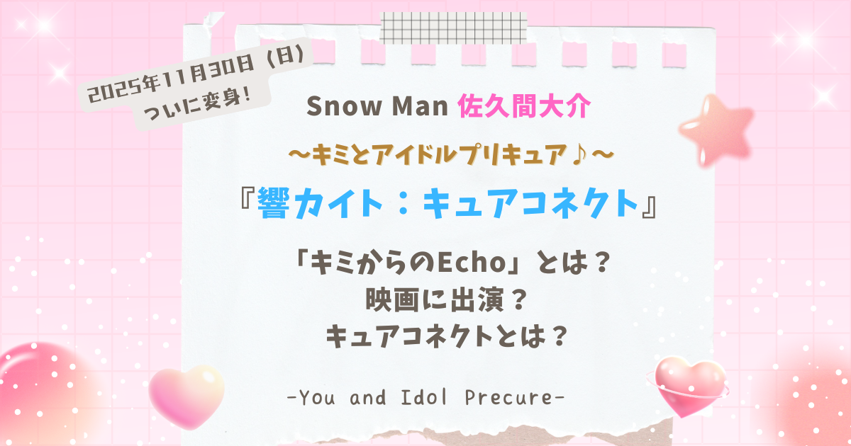 ついに、11月30日に放送された42話「コネクト!キミからのEcho」にて、Snow Man佐久間大介さんが演じる響カイトが『キュアコネクト』変身しました!