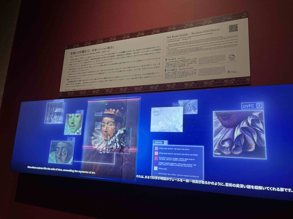 また、肖像画に対し実施された科学的検証の映像は、なかなか見応えがありました。意外にも娘が真剣な眼差しで見入っていました。娘は今回の展示の中で、伊東マンショの展示が一番心に響いたそうです。