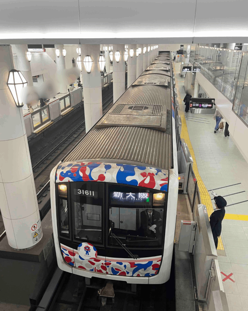 最後の万博ぶり?Osaka Metroに乗りましたが、万博ラッピングされた電車に親子で大興奮♪