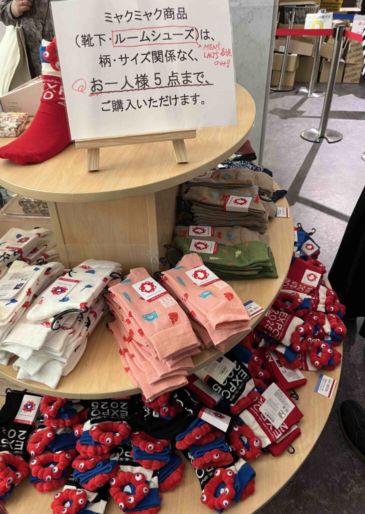 イタリアに関連したお土産やミャクミャクグッズも!暖かい靴下、これからの季節に重宝しそう♪(お値段は可愛くないですが・・・)