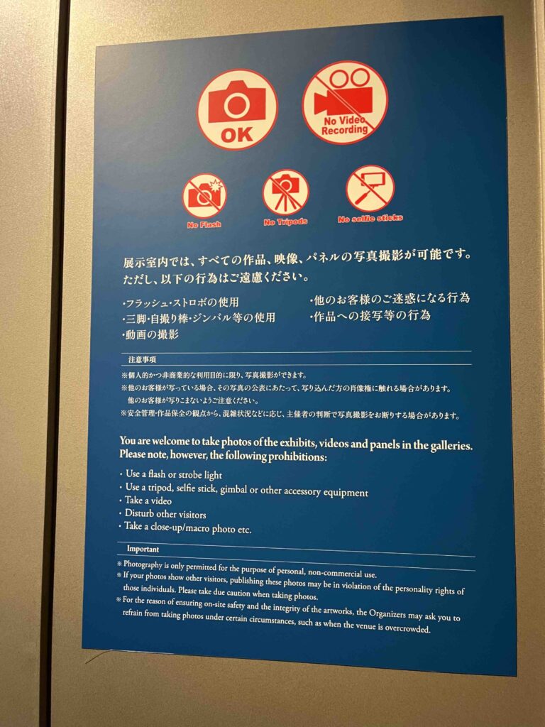 展示室内では、全ての作品、映像、パネルの写真撮影が可能(動画は禁止)でした。