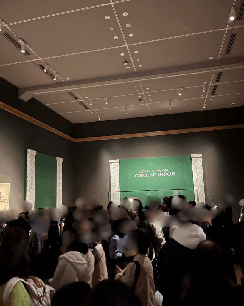 今回の展示の中で一番並んだのは、レオナルド・ダ・ヴィンチの手書きの原稿「アトランティコ手稿」