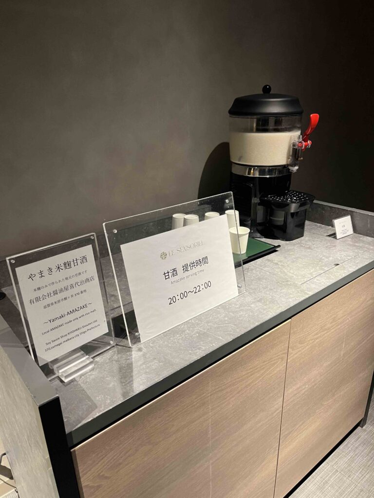 ソファがある癒し空間で、湯上がりにぴったりの飲み物や甘酒など - ナイトキャップ