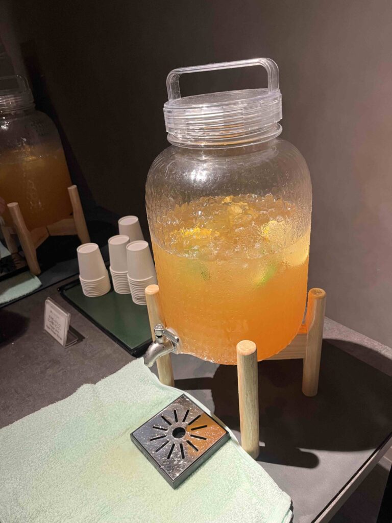 温泉ラウンジには、オシャレなハーブティーや時間帯によっては甘酒もあります。ゆっくりできるソファ空間で湯上がり後もゆっくり癒されました♪