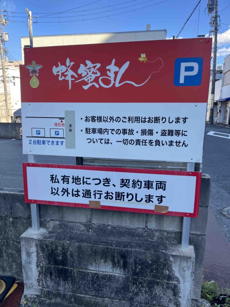 店舗の北裏側に駐車場がありました。狭い道沿いにあるので少し分かりにくいですが、赤い看板が目印です。