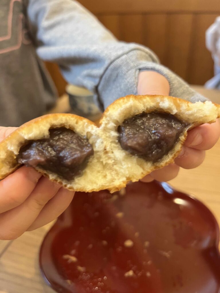 我が家は、その場で焼き立てを食べようと店内で出来立ての「蜂蜜まん」をいただくことに♪イートインスペースには、なんとお茶のサービスも!蜂蜜まんに合うとっても嬉しいサービスです。