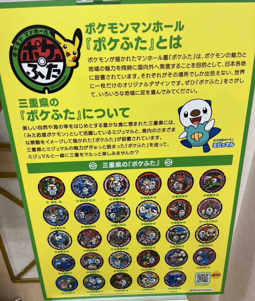 「ポケふた」とは、株式会社ポケモンが地域の魅力発信と観光振興を目的に、全国の自治体へ寄贈しているポケモンの絵が描かれたマンホール蓋のことです。 三重県内には、ミジュマルをモチーフとした31枚(2025年10月時点)あります。