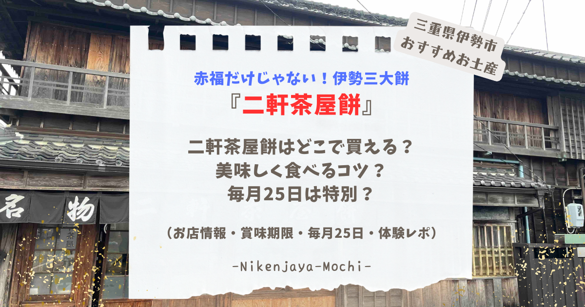 この記事では『二軒茶屋餅』について、お店情報(定休日、営業時間、毎月25日)・賞味期限・保存方法や我が家の体験談も併せてご紹介します。