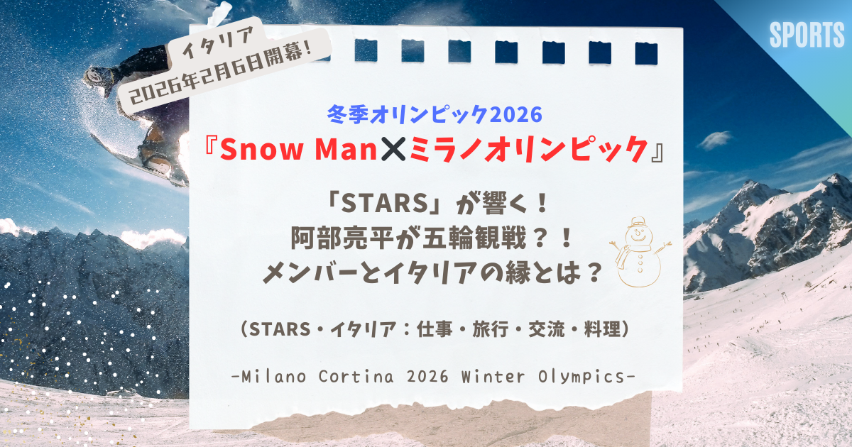 この記事では『SnowMan✖️ミラノオリンピック』と題して、メンバーとイタリアの縁を、仕事・料理・交流など様々な側面からご紹介します。