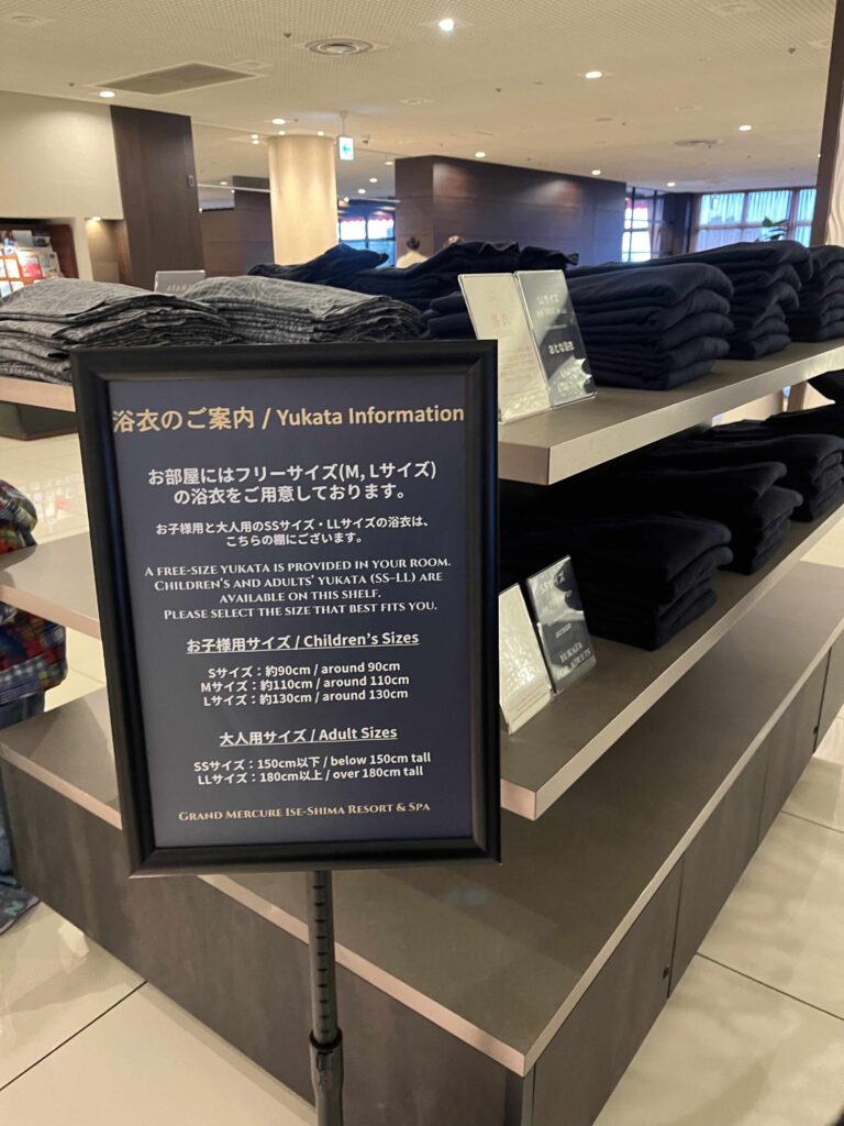 浴衣は大人用はお部屋にセットされていますが、ロビー横には、子ども用の作務衣(M・L)があります。子ども用は数に限りがあるので、利用される方は早めに確保しておくことをおすすめします。