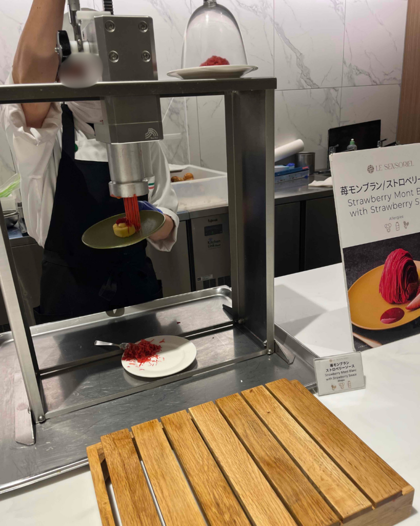 お腹いっぱいでもう食べられない・・・と思いつつ、甘いものは別腹!目の前で作ってくれる苺モンブラン、スルッとお腹に入っていきました。