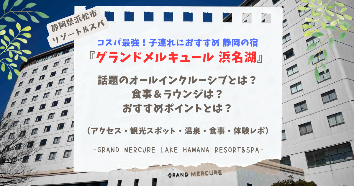 この記事では、『グランドメルキュール浜名湖リゾート&スパ』について、アクセス・宿泊したお部屋・温泉・食事などオールインクルーシブの魅力(ラウンジなど)について我が家の体験談も併せてご紹介します。