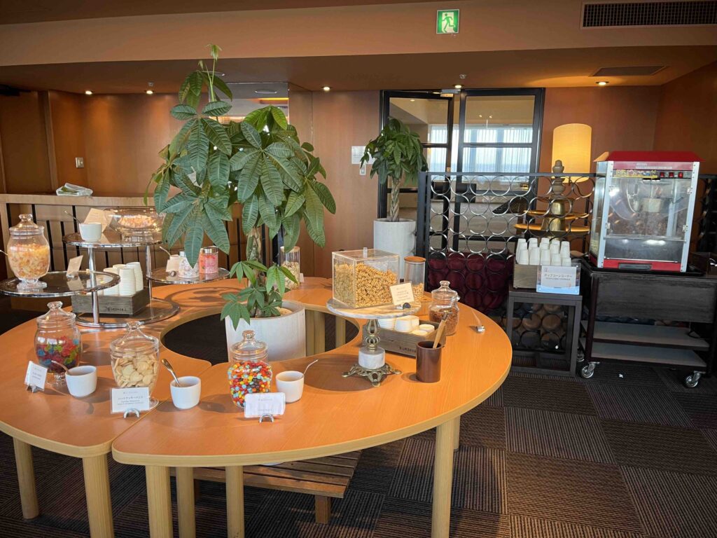 喉が渇いたり、小腹が空いても、ラウンジへ行けば心も胃袋も満たされます。買い出ししなくていい、手ぶらでホテルへ来れるのはとても助かります。