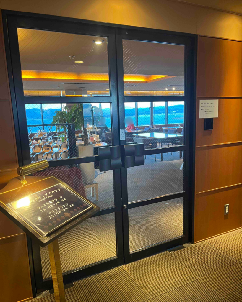 我が家は2度目の宿泊にして初めて、こちらのラウンジを利用しました。専用のカードキーで入るところもワクワク♪ラウンジに一歩入ると、浜名湖の雄大な景色が目の前に広がります。