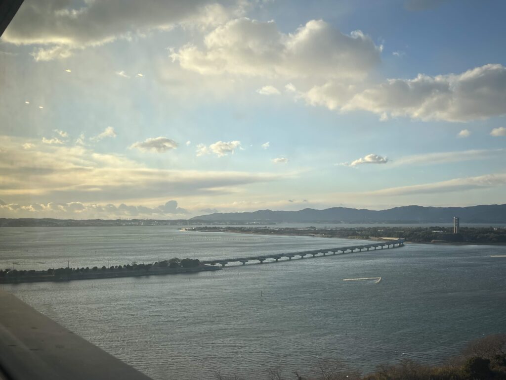 いよいよラウンジへへ行ってみると、目の前には浜名湖の絶景が広がり「凄い景色!」と思わず声が出てしまうほど感動の空間でした。